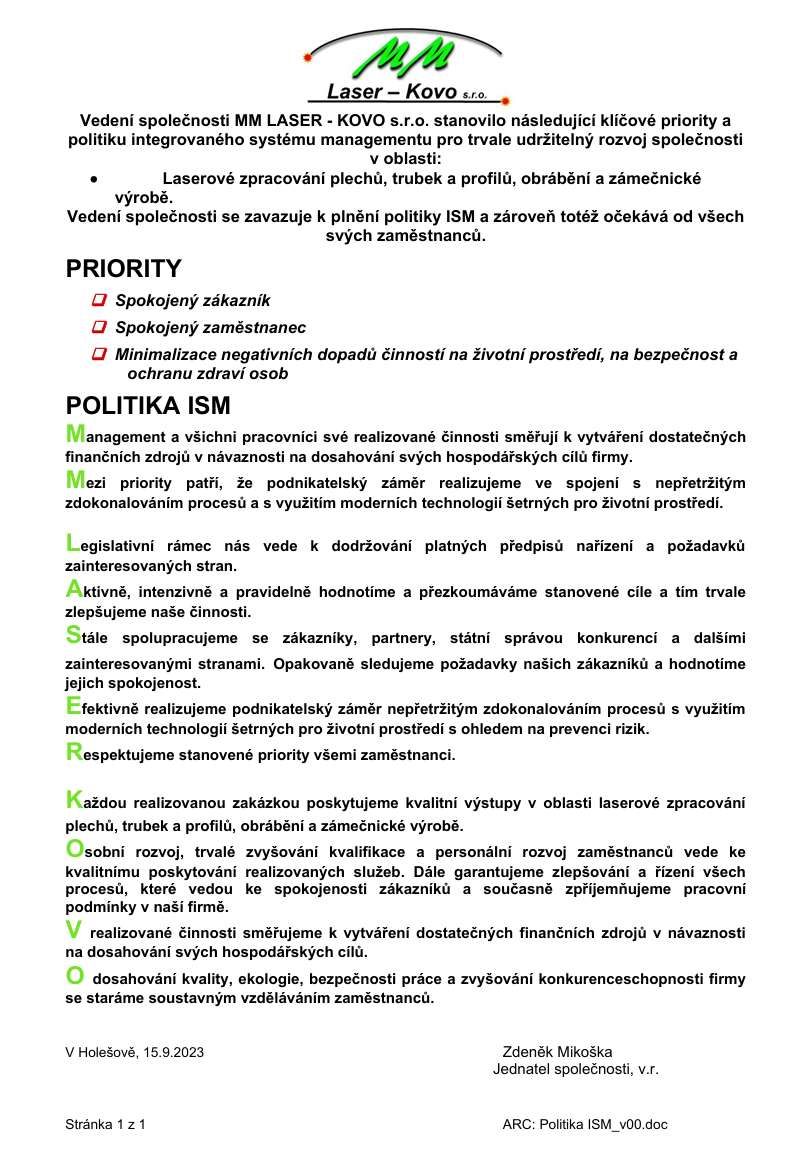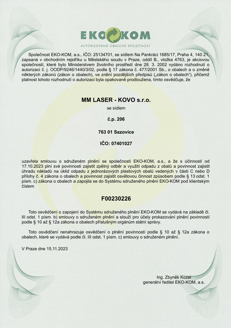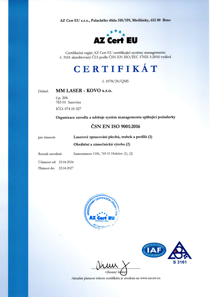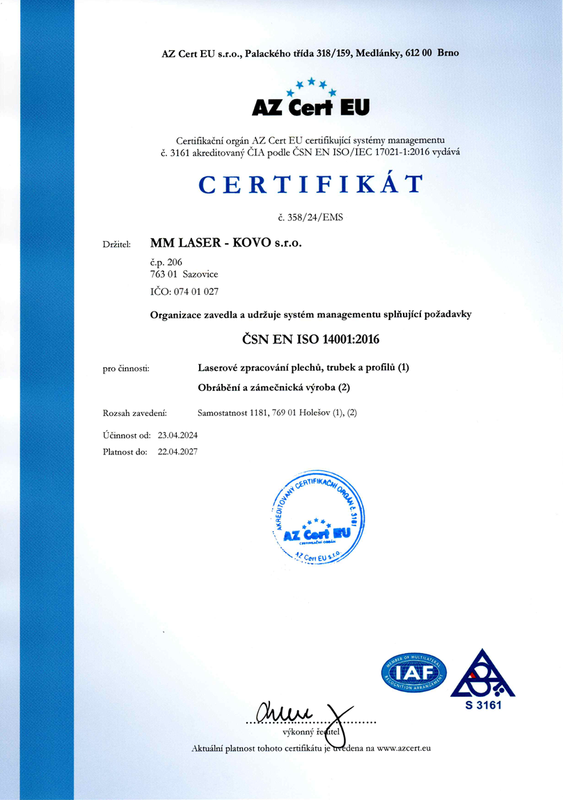Naše společnost si zakládá na vysoké kvalitě služeb i výrobků a proto je pro nás samozřejmostí plnit přísné mezinárodní standardy. Certifikáty, které jsme získali, nejsou jen formální dokumenty, ale důkaz, že naše práce splňuje očekávání zákazníků i nejnáročnějších kontrolních orgánů.